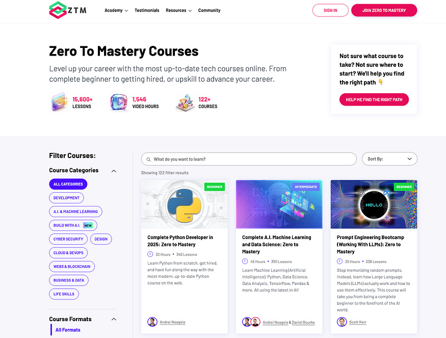 Zero to Mastery Academy is a fantastic platform that offers on-demand learning and is specifically tailored to data roles. I’ve taken several of their courses in the past that I wrote about in other pieces.