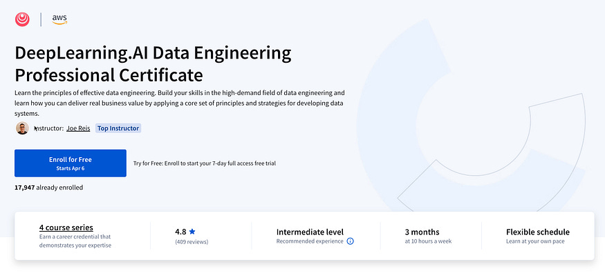 Intermediate+: Coursera’s DeepLearning.AI Data Engineering Professional Certificate